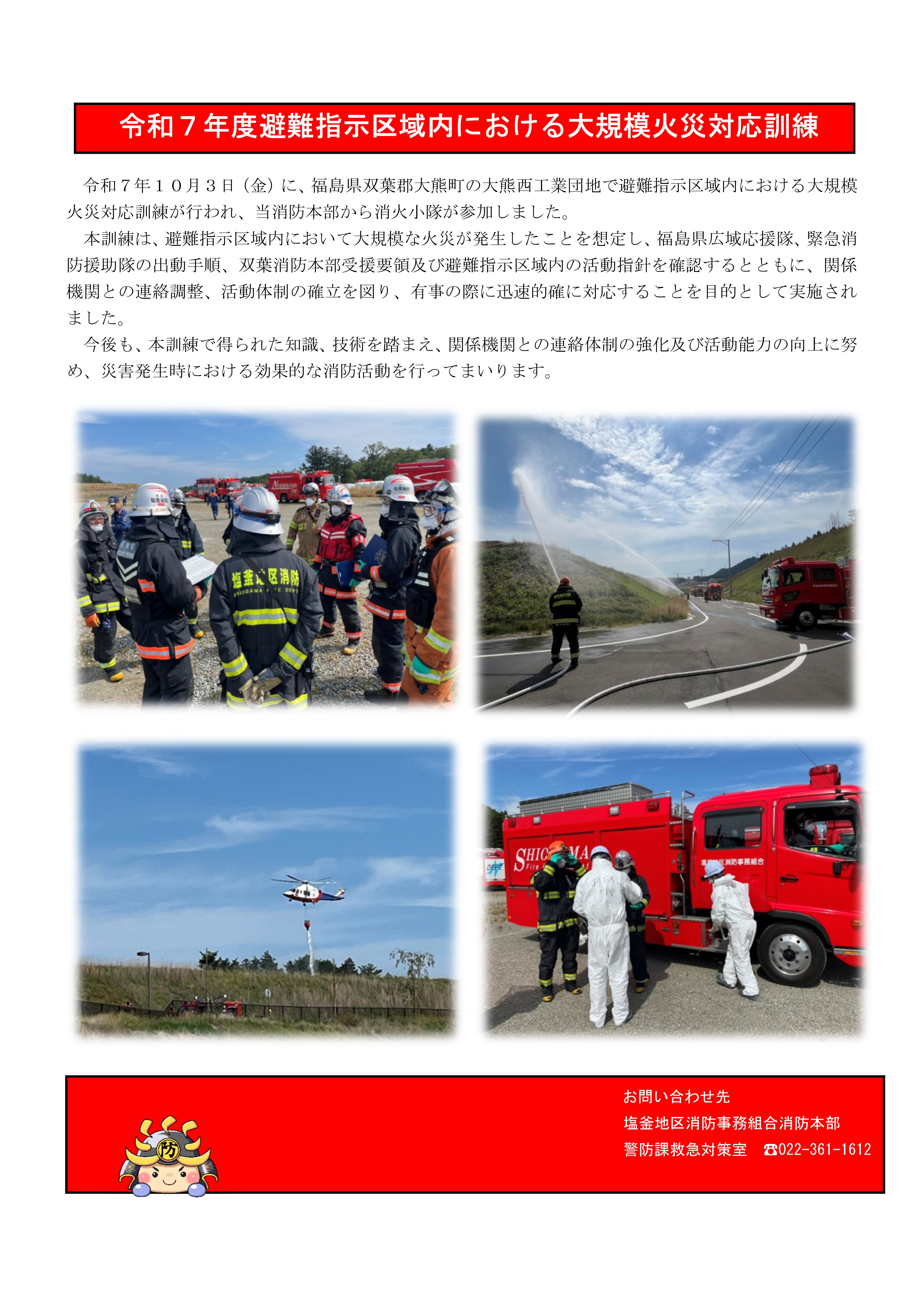 令和7年度避難指示区域内における大規模火災対応訓練に参加しました!