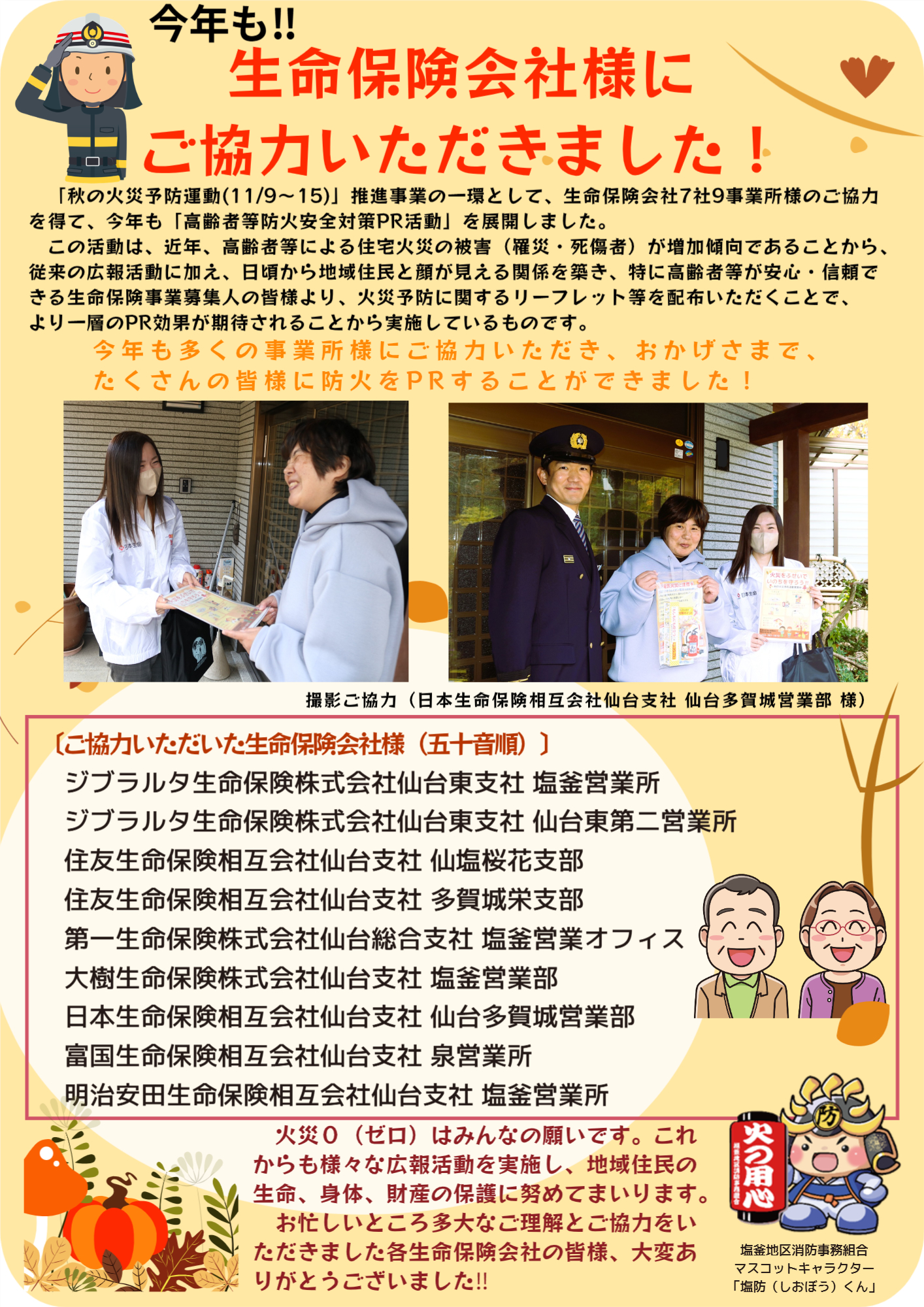 今年も!多くの生命保険会社様にご協力をいただき「高齢者等防火安全対策PR活動」を展開ししました!